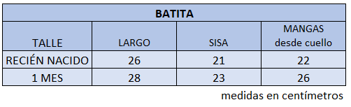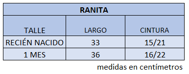 El talle de etiqueta 1 corresponde al talle 1 mes.