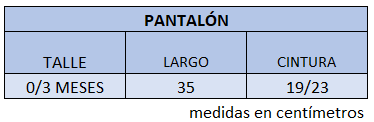 El talle de etiqueta 1 corresponde al talle 0/3 meses.
