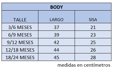 El talle de etiqueta 1 corresponde al talle 3/6 meses.