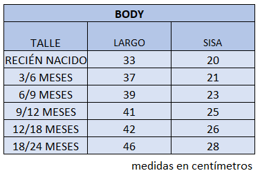 Recien Nacido 3/6 meses 6/9 meses 9/12 meses 12/18 meses 18/24 meses