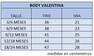 El talle de etiqueta 1 corresponde al talle 3/6 meses.