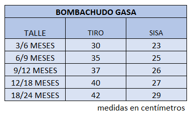 El talle de etiqueta 1 corresponde al talle 3/6 meses.