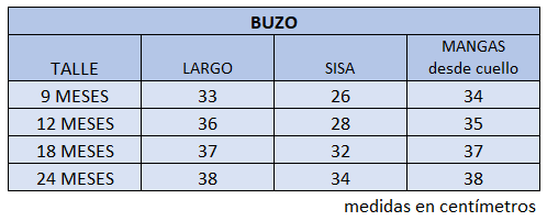 El talle de etiqueta 4 corresponde al talle 12 meses.
