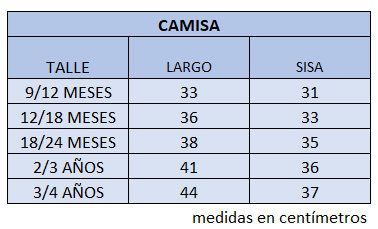 El talle de etiqueta 1 corresponde al talle 9/12 meses.