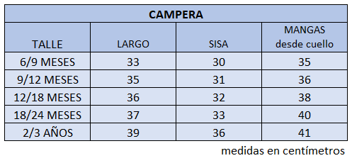 El talle de etiqueta 1 corresponde al talle 6/9 meses.