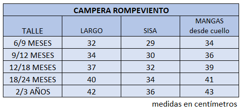 El talle de etiqueta 1 corresponde al talle 6/9 meses.