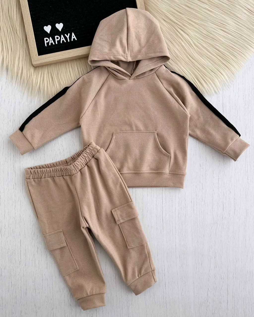 Conjunto de darlon, con líneas en las mangas, buzo canguro y babucha cargo.