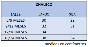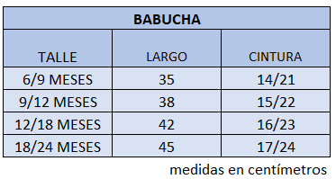 El talle de etiqueta 1 corresponde al talle 6/9 meses.