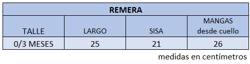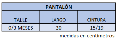 El talle de etiqueta 1 corresponde al talle 0/3 meses.