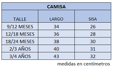 El talle de etiqueta 3 corresponde al talle 12/18 meses.