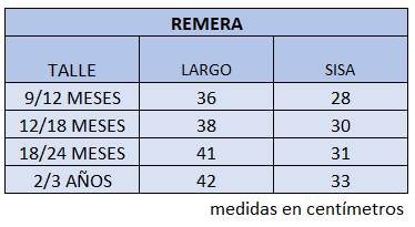 El talle de etiqueta 2 corresponde al talle 9/12 meses.