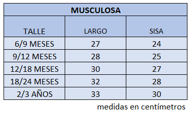El talle de etiqueta 1 corresponde al talle 6/9 meses.