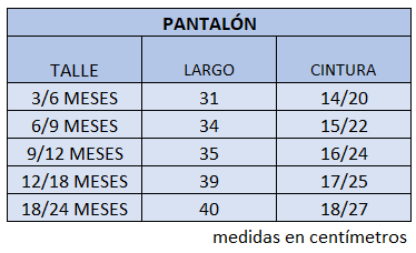 El talle de etiqueta 1 corresponde al talle 3 meses.