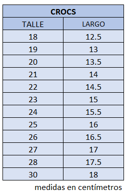 Talle 18 Talle 19 Talle 20 Talle 22 Talle 24 Talle 26 Talle 30