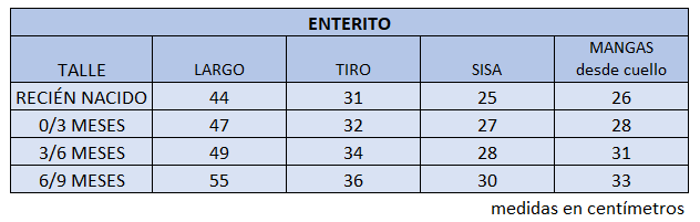 El talle de etiqueta 1 corresponde al talle 0/3 meses.