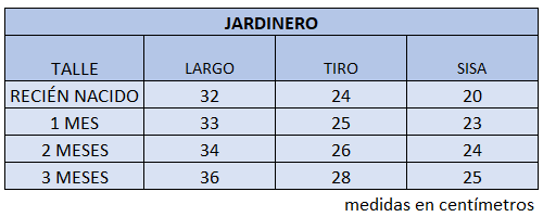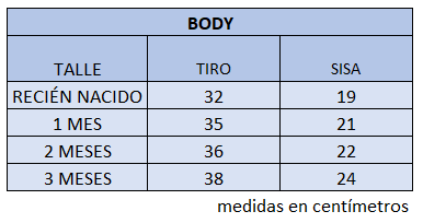 El talle de etiqueta 1 corresponde al talle 1 mes.