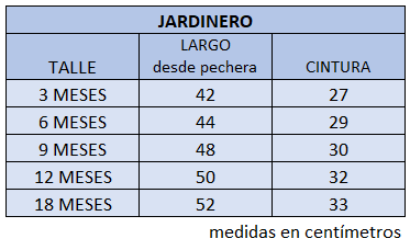 El talle de etiqueta 1 corresponde al talle 3 meses.