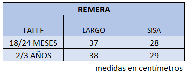 El talle de etiqueta 5 corresponde al talle 2/3 años.