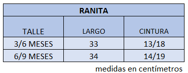 El talle de etiqueta 1 corresponde al talle 3/6 meses.