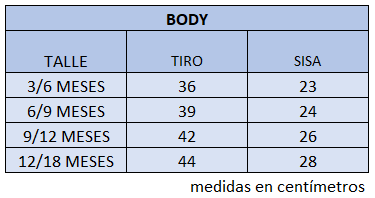 El talle de etiqueta 3 corresponde al 6/9 meses.