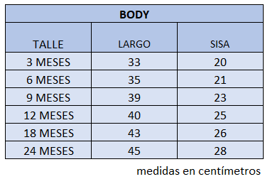 El talle de etiqueta 1 corresponde al talle 3 meses.