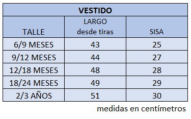 El talle de etiqueta 1 corresponde al talle 6/9 meses.