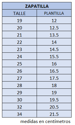 Talle 19 Talle 20 Talle 21 Talle 22 Talle 23 Talle 24 Talle 25