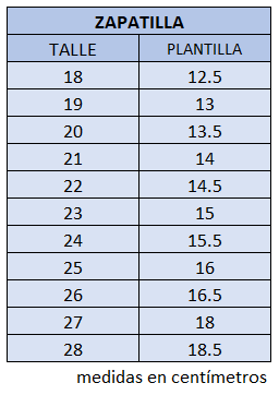 Talle 18 Talle 19 Talle 20 Talle 23 Talle 26 Talle 27 Talle 28